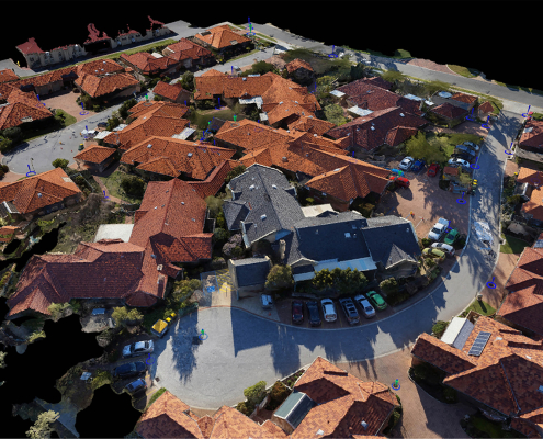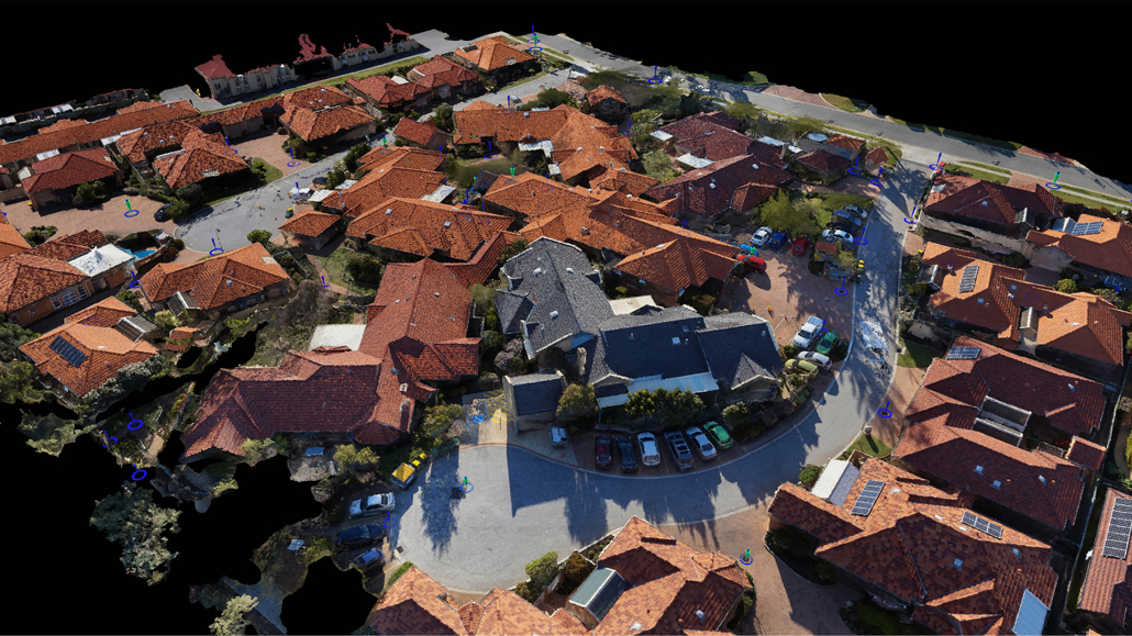 Link to: Aerial Survey to CAD Conversion Link to: Aerial Survey to CAD Conversion Aerial Survey to CAD ConversionOrthomosaic map of a residential area with a CAD overlay for property boundaries and roads. Link to: Stockpile Volume Calculations Link to: Stockpile Volume Calculations Stockpile Volume Calculations
